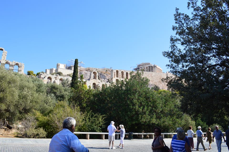 s is also home to two UNESCO World Heritage Sites- Daphni Monastery and the Acropolis of Athens. In the mid-5th century BCE, when Athens was the center of the civilized world and at the height of its power, its leader, Pericles, felt that the city needed a focal point to showcase its importance and began building on this ancient rock top in 480 BC. The Acropolis, Parthenon, and the other temples on its summit were the image of ancient Greece for me.I joked with my wife, Karen, that I wanted to be young enough to walk to the top of the Acropolis without a walker or a wheelchair, not realizing how true that would be. There is only one way to the top, and that is walking, or more like climbing!