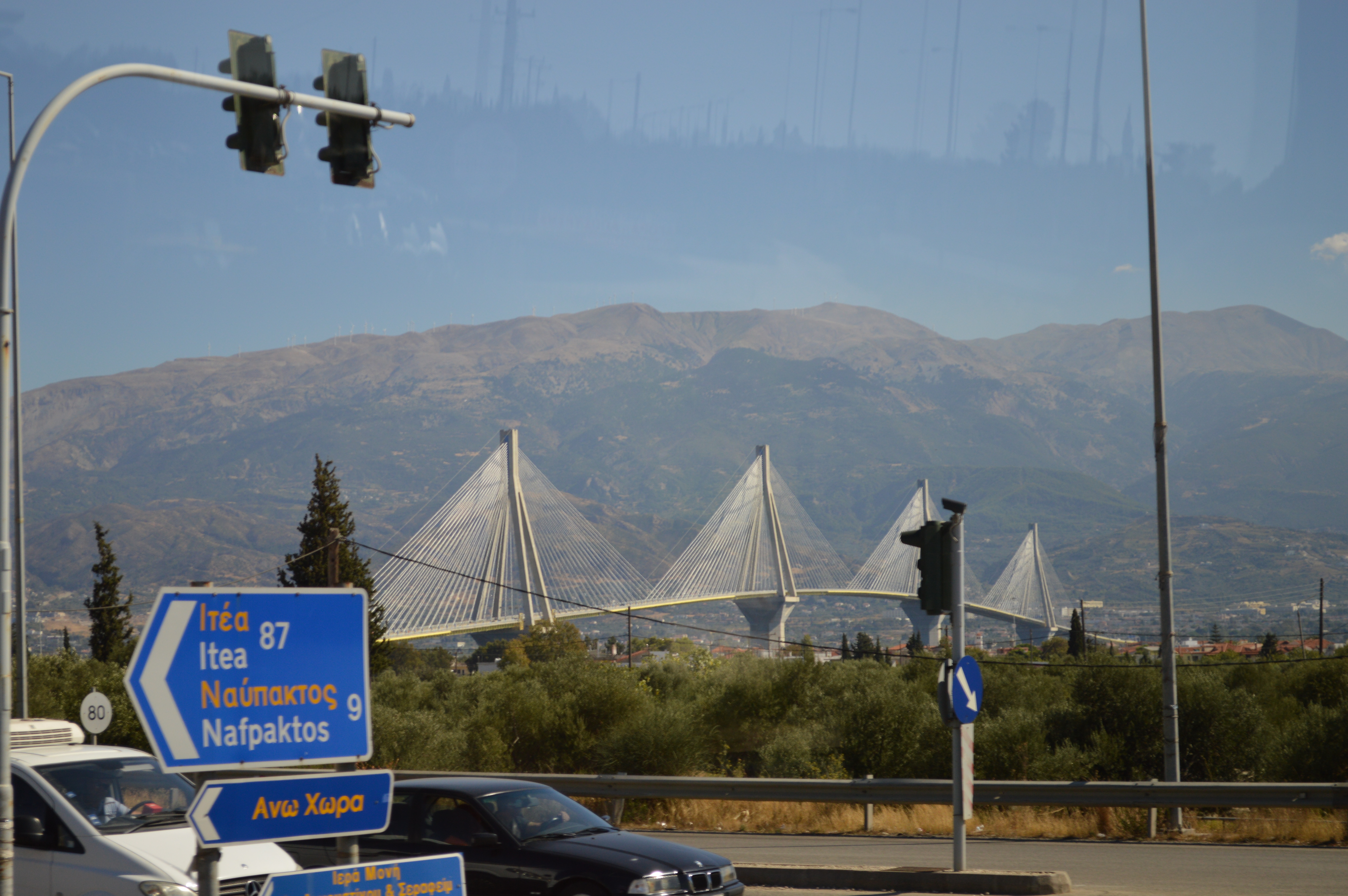 the Rio-Antirrio Bridge/Charilaos Trikoupis BridgeThere were many challenges that faced the engineers: deep water, a weak sea floor for the foundations, seismic activity, and with that a chance of tsunamis’. Construction began in July of 1998 and completed on August 7, 2004, the week before the opening of the Summer Olympics in Athens. In fact the first to cross the new bridge where the Olympic torchbearers’ bring the Olympic flame to Athens from Ancient Olympia.