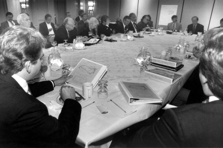 The Committee held its first meeting on March 10, 1994, at the Menger Hotel, next door to the Alamo. The committee worked for six months in preparing their list of key recommendations, which included: closing the streets to traffic around the Plaza, removing the street curbs, and creating a visitor center/museum.