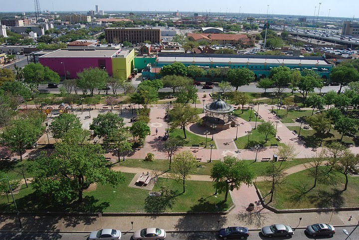 We’ll begin back at the San Fernando Cathedral. From there, we’ll walk west on W. Commerce Street until we reach S. Santa Rosa Street. Once there, you’ll see the historic Market Square, and next to it is Milam Park, our first stop.