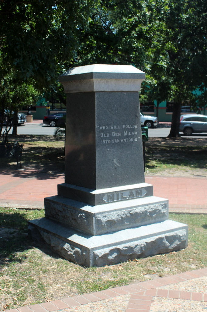 An interesting piece of history about this monument is that it was initially to have a statue of Milam on top of it (as the 1938 monument has), but it was never completed.