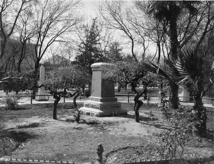 Milam’s original granite grave marker was at the center of the park. Photo from UTSA Digital Collections website.