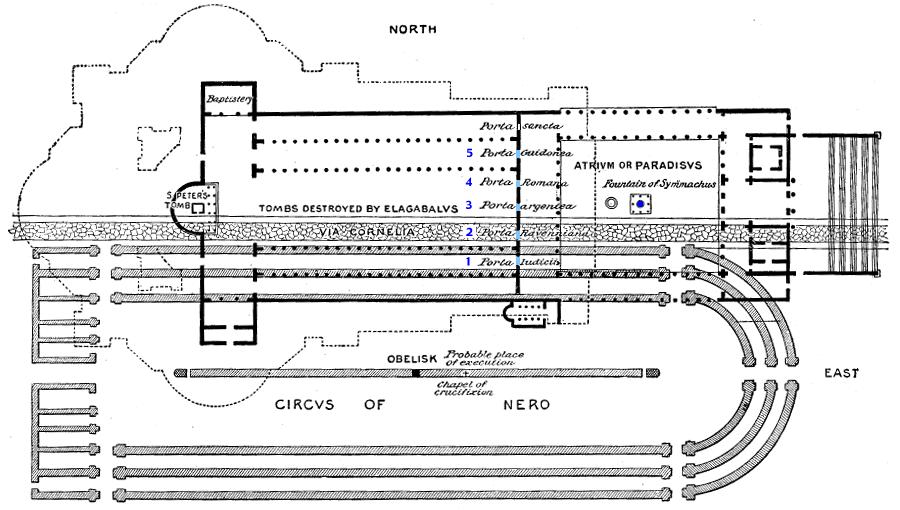 University of Chicago . “The Topography of St. Peter’s Basilica.” Penelope, University of Chicago , penelope.uchicago.edu/Thayer/E/Gazetteer/Places/Europe/Italy/Lazio/Roma/Rome/Vatican/S.Peter/Lanciani_plan.html. Sept. 2020.