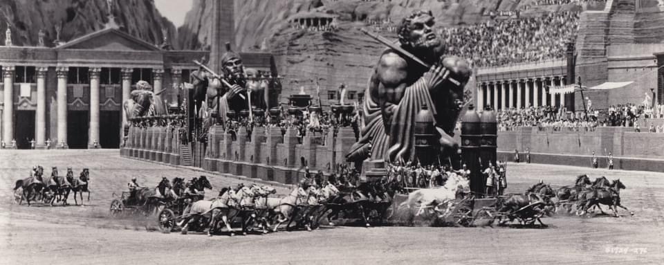Roman circuses were built specifically for horse and chariot racing. Their design was a long oblong structure with an earthen track. The circuses racecourse was divided down the middle by a long wall known as a spina. This spina created two tracks, which ran along each of its sides. Each end of the spina was left open, providing for the starting gate and a turning point for the racers. The audiences that attended these races sat on ascending rows along the length and ends of the track. To get an idea on how these circuses may have looked, think of the chariot race in the movie Ben-Hur.