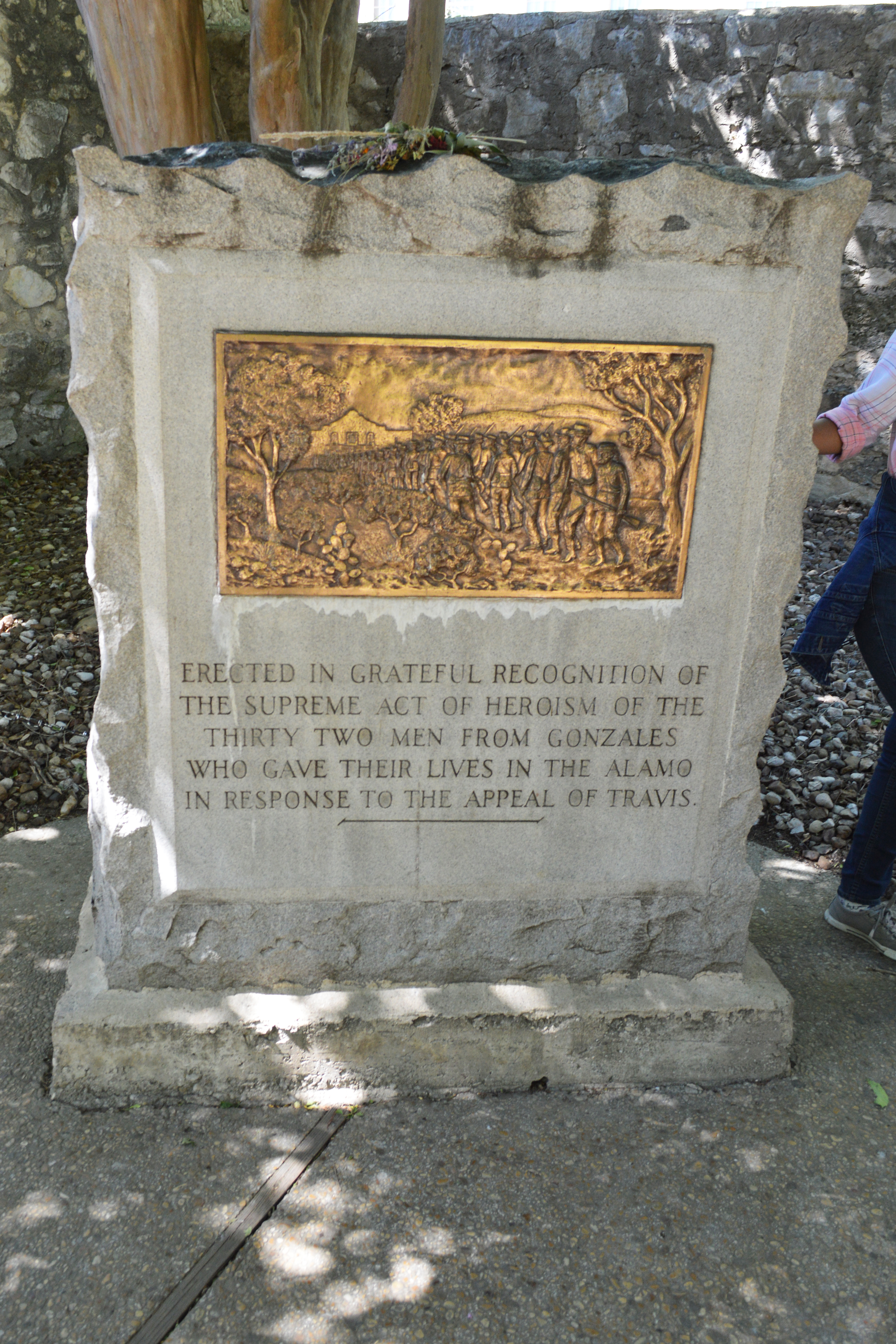 The memorial to the “Immortal 32” in the court of the Alamo. Photo by author