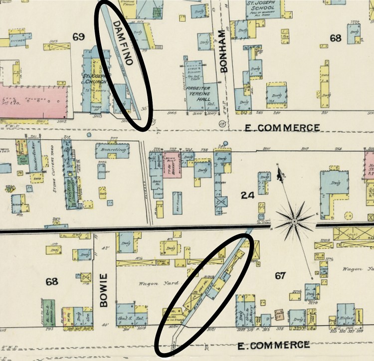 Sanborn Fire Insurance Company. “Perry-Castaneda Library Mao Collection.” 1888 San Antonio Map Sheet #10, The University of Texas Libraries, maps.lib.utexas.edu/maps/sanborn/s-t/txu-sanborn-san_antonio-1888-10.jpg. Accessed 6 May 2023.