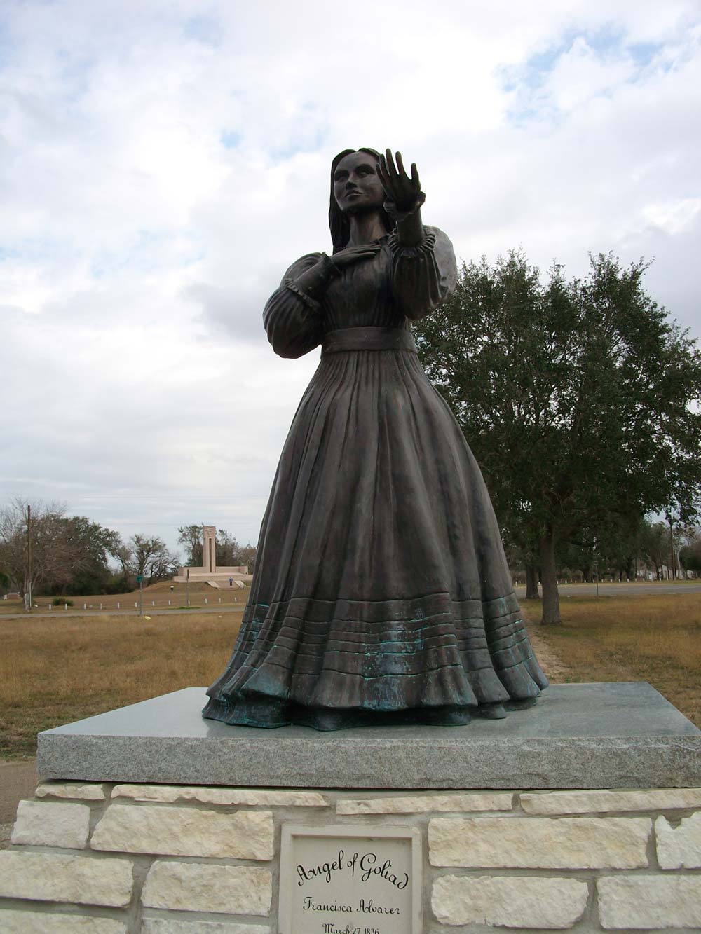 Francisca Alavez, the wife of Mexican officer Captain Telesforo Alavez, is credited with saving the lives of Texian prisoners from the Palm Sunday massacre. Francisca Alavez rescued twenty Texians by convincing Mexican officers that they were essential to the Mexican Army as physicians, orderlies, and interpreters. It’s also said she helped others to sneak out during the night. For this, she is known as “the Angel of Goliad.”
